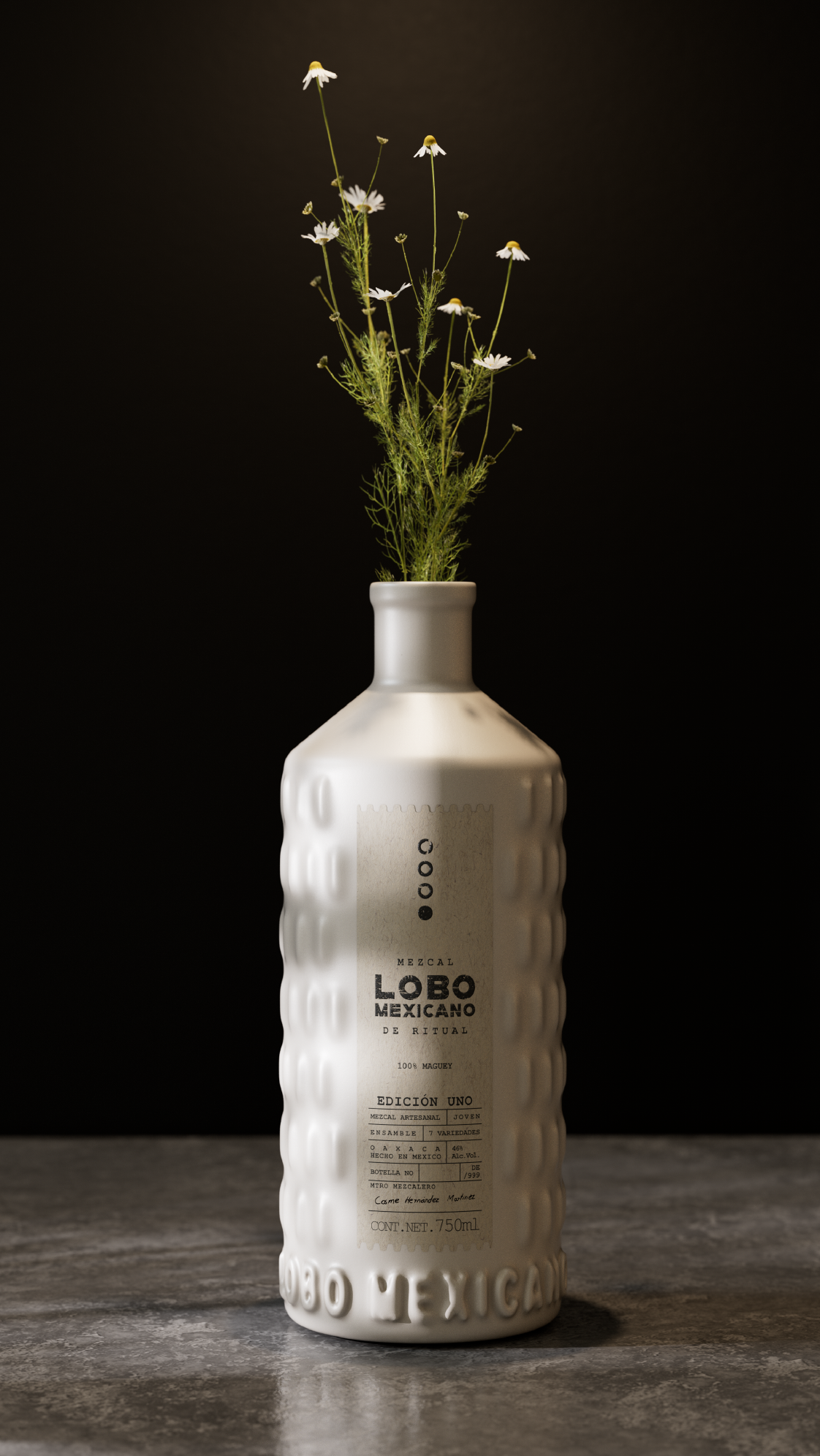 El equilibrio entre la forma y la función se refleja en nuestras ediciones de 500 ml, cuidadosamente elaboradas en cristal, como un gesto hacia el consumo responsable. Creemos que es la medida perfecta para compartir y disfrutar de este mezcal ritual. Además, nuestra edición limitada de 999 piezas en envase de cerámica es mucho más que un simple contenedor: es una obra de arte, coleccionable y reutilizable, que celebra el legado y la belleza del ritual en cada detalle.